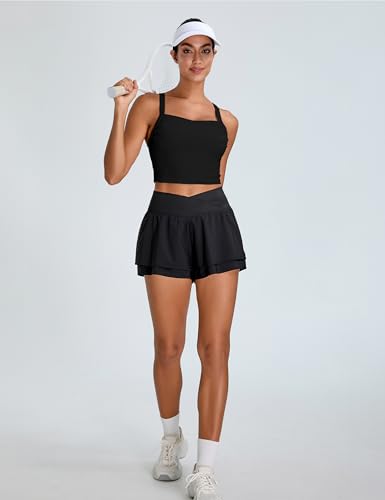 • Built-in Bra with Removable Padding: Double-layer cushion pads offer medium impact support & shape enhancement. Chest ruffles flatter your figure. Secure workout tank top stays put.