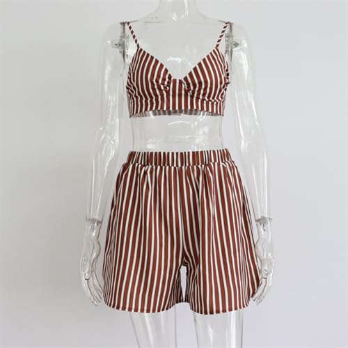 XYGJZ Women's Casual 3 Piece Outfit Set Stripe Long Sleeve Shirt Bra Top Shorts Tracksuit Set 3