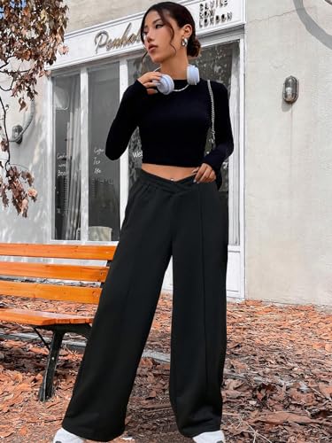 HOPYOP Womens Sweatpants Wide Leg Pants for Women Fall Winter Baggy V Crossover Womens Sweat Pants with Pockets 6