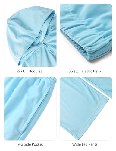 Womens Casual Velour Tracksuit Set Fall Sweatsuits 2 Piece Outfits Lounge Sets Full Zipper Hoodie Wide Leg Pants Set 2