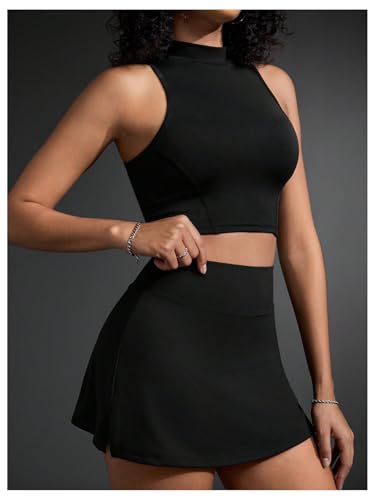 • Design: The women's workout set features 2 pieces, crew neck and sleeveless less tank top and mini sports skirts