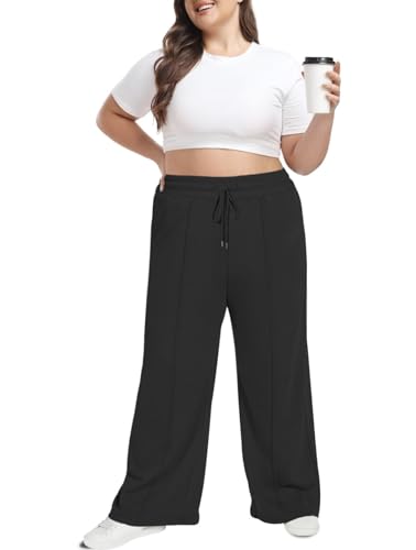 Moon Wood Women's Plus Size Sweatpants High Waisted Straight Wide Leg Casual Pants Baggy Lounge Pants with Pockets 6