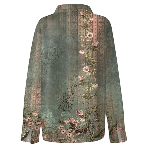 Womens Button Down Shirt Dressy Casual Floral Print Work Tops Business Long Sleeve Blouses 4