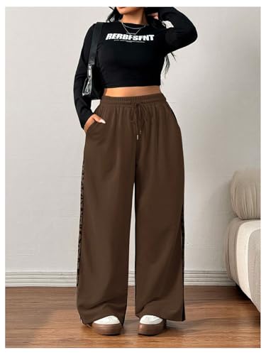HOT ! Verdusa Women's Plus Size Leopard Print Baggy Sweatpants Athletic Wide Leg Pants with Pockets