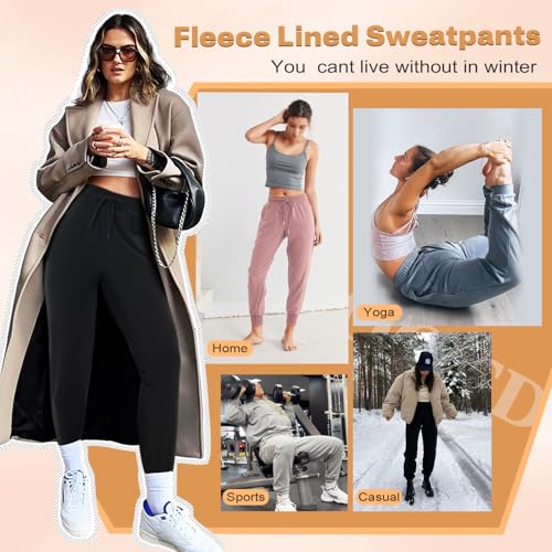 MOREFEEL Fleece Lined Joggers with Pockets for Women High Waisted Thermal Sweatpants Winter Yoga Pants Hiking Running 6