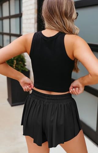 GOBLES Women's Summer High Wide Waistband 2 in 1 Butterfly Workout Athletic Tennis Shorts 2