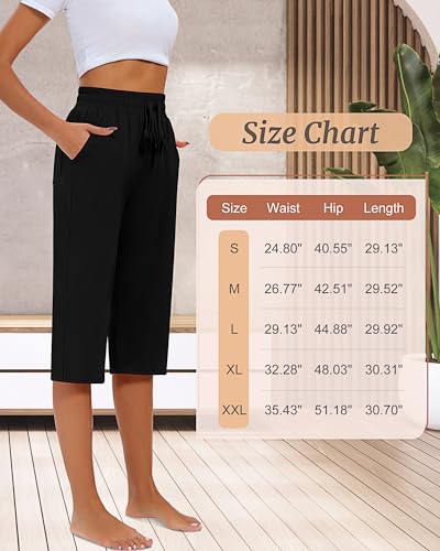 Riyiper 3 Pack Women Capri Pants, Causal Drawstring Lounge Yoga Capri Sweatpants Loose Wide Leg Crop Jogger Pant with Pockets 6