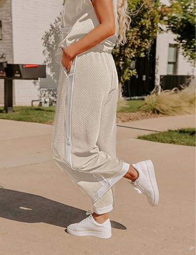 • Feature: This sweater set is the perfect relaxed look. Flattering cut for women. The tops features a classic crew neck and breathable short sleeves, while the elastic-waist pants offer a relaxed fit without sagging.