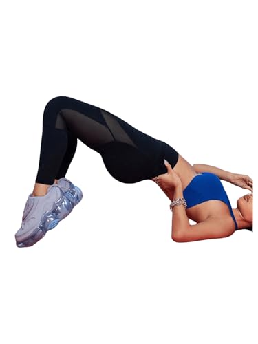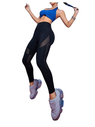 SweatyRocks Women's Mesh Leggings High Waisted Tummy Control Patchwork Slim Fit Yoga Pants Capris 6