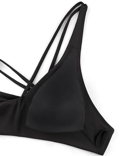 CRZ YOGA Womens V Neck Bikini Tops Twist Front Triangle Sexy Bathing Suit Criss Cross Back Swimsuit Padded 6