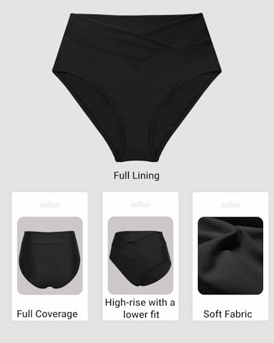 More information about Women V Cut Full Coverage Bikini Bottom - High Waist Swim Bathing Suit Bottoms Cross V Front Swimsuit