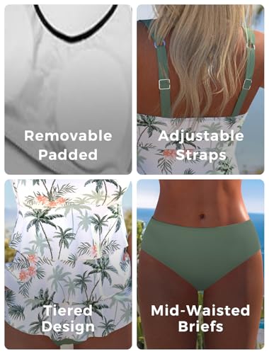 • Exquisite Two-Piece Design: This women's tankini swimsuit combines a tiered top with mid-waisted briefs for a retro-chic, flattering look. Featuring a V-neckline and adjustable straps, it offers tummy control and modest coverage, perfect for 2025 summer days at the pool or beach.