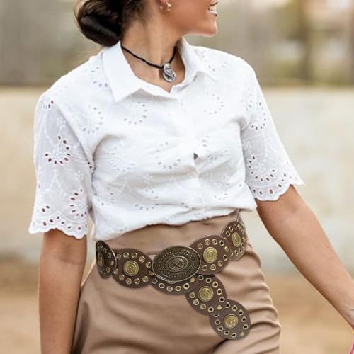 Women Waist Belt Style Boho Wide Belt for Shopping Jeans Corset Trousers Western Fashion Accessory 6cm Width Adjustable Buckle- Coffee 5
