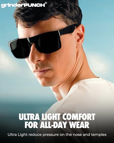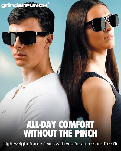 • GrinderPUNCH Packaging & Customer Service: Each pair of GrinderPUNCH sunglasses includes a sunglasses1, microfiber pouch1, microfiber glasses cleaning cloth1, and glasses box1, all designed to clean and protect your lenses from scratches and damage. PRODUCT DIMENSION – Frame Width:145mm(5.70inches) | Lens Width: 54mm(2.13inches) | Lens Height: 46mm(1.81inches) | Temple Length: 146mm(5.75inches) | Nose Bridge: 21mm(0.83inches).