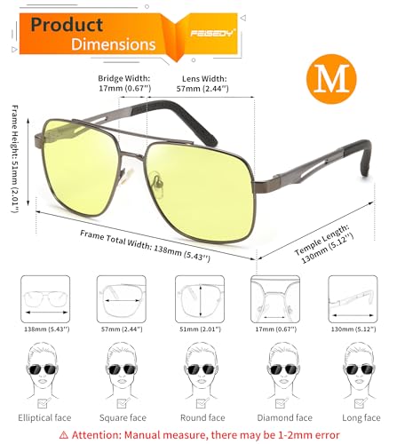 • 【Choose FEISEDY for a lightweight safety experience】- The design of this FEISEDY yellow glasses takes comfort into consideration, using a lightweight aluminum magnesium metal frame, soft silicone nose pad, comfortable spring legs, and all-day comfort; These glasses are the ideal choice for driving, filtering out dazzling light and providing a safer user experience on the road, making this sunglasses a comfortable and durable daily choice with the unique quality of the recognized FEISEDY brand.