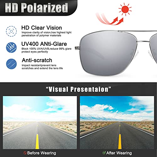 • Full Metal Frame: Classic retro polarized aviator sunglasses are crafted from lightweight and strong metal material frames and give you prolonged and high-frequency use, ideal for driving, cycling, fishing, climbing, or other outdoor activities.