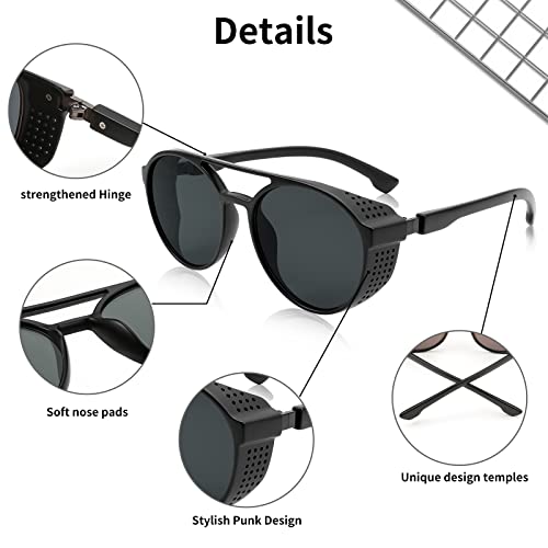 • STEAMPUNK Design - Retro steampunk style round sun glasses designed with Gothic side shield for women men.Effectively reduce the reflection inside the mirror surface caused by side light. Vintage cool sunglasses designer make you look awesome and most fashionable person in the world.