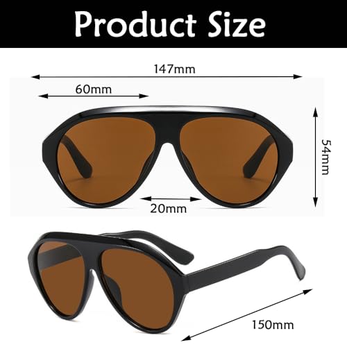 Oversized Retro Aviator Sunglasses Womens Mens, Aviator Sunglasses for Women, Retro Aviator Polarized Sunglasses for Women Men Classic UV400 Oversized Aviators, Black 6