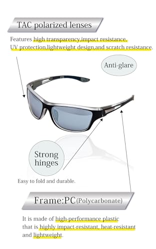 • 【TAC Lenses】 These sunglasses feature high-quality TAC polarised lenses, known for their exceptional clarity, impact resistance, UV protection, lightweight design, and durability against scratches.