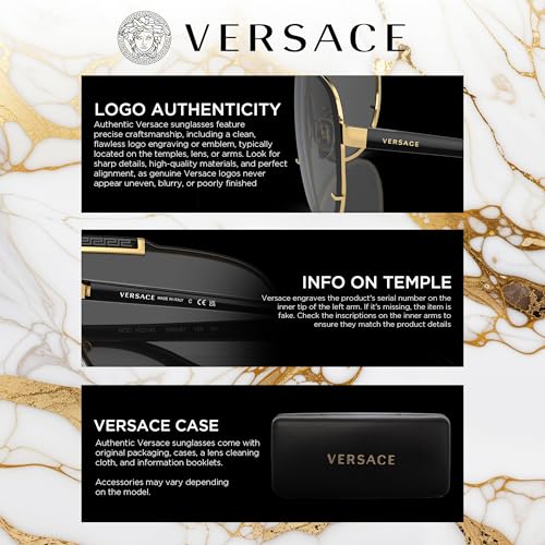 • Premium Craftsmanship: Elevate your style with these expertly designed Versace sunglasses. Featuring a sleek metal front in gold, lightweight gold plastic temples, and durable non-polarized lenses, these frames offer the perfect balance of durability and elegance.
