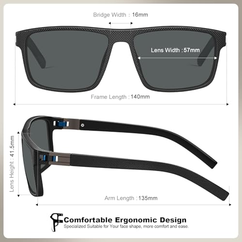 • 【Fashion Square Design Sunglasses】The unique rectangular frame designed for real men is the most classic style that never goes out of, understated but not mediocre, and the lines of the temples add edgy dynamism to the classic fashion. Ideal for activities such as running, driving, fishing, golfing, and cycling, these polarized sunglasses men are perfect for any outdoor pursuit.