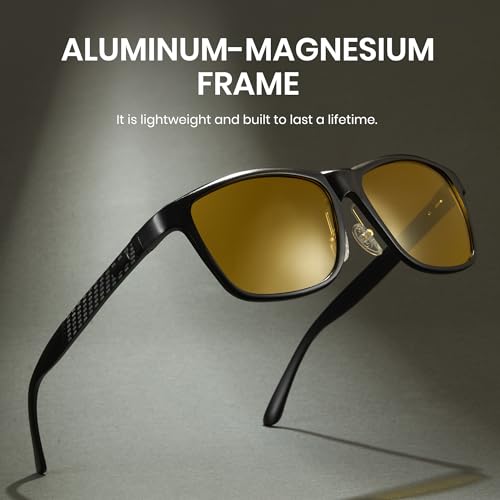 • Lightweight Aluminum‐Magnesium & Carbon Fiber Frame: Cyxus sunglasses for men are crafted with an ultralight AL-MG core wrapped in high-strength carbon fiber, these polarized sunglasses feel barely there — comfortable for all-day wear without pressure points.