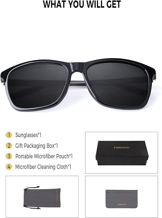 • ESQUISITE PACKAGING & CUSTOMER SERVICE: Each pair of FIMOSON glasses includes microfiber pouch*1, microfiber glasses cleaning cloth*1, glasses box*1, designed to clean and protect your lenses from scratches and damage. FIMOSON sunglasses also come with exquisite packaging, making them a perfect and practical choice for your friends and family! Enjoy premium FIMOSON brand customer service that ensures a satisfying shopping experience with every purchase!