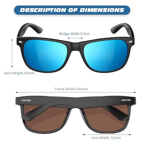 • 【POLARIZED UV PROTECTION LENSES】Polarized lenses UV400 Protection Coating Blocks 100% of Harmful UVA, UVB & UVC Rays up to 400nm. All WISTON Lens reduce glare from roads, water, snow and other horizontal surfaces. Restore true color, eliminate reflected light and scattered light and help see better.
