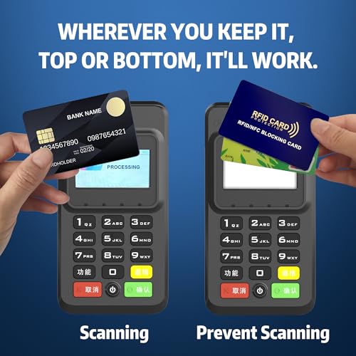 • Safeguard Your Information: The RFID blocking card interferes with radio frequency signals within a range of 2.4 inches (1.2 inches on either side of the card). Just slip it into your wallet. This card can shield all contactless smart cards like debit cards, bank cards used at ATMs, identification cards, passports, and driver's licenses, preventing the scanning of their information and protecting against data theft.