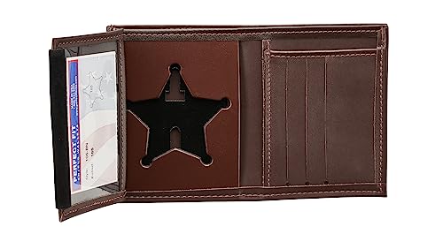 Perfect Fit Shield Wallets 5 Point Star Florida Sheriff Five Point Star Badge Style Hidden Badge Wallet Leather (Cutout PF-185) Brown 1