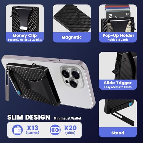 Magsafe Wallet with Money Clip,Ridge Wallets for Men Magsafe Compatible for Large iPhone 16/15/14/13 Pro Max,Slim Magnetic Card Holder with Stand & Money Clip-Magsafe Pop Up Wallet for Men 7