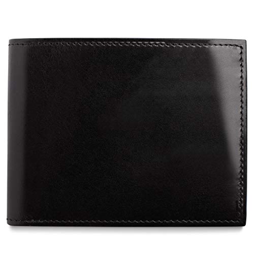 HOT ! Bosca Men's Leather Wallet - RFID Security Lining - 8 Card Slots - Divided Currency Well - Full Grain Italian Leather with Glossy Finish - Black