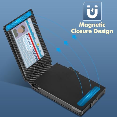 Minimalist Wallet for Men,Slim RFID Blocking Bifold Wallet Credit Card Holder Aluminum Pop-Up Card Case with Money Clip (Carbon Fiber Black) 5