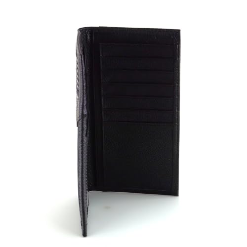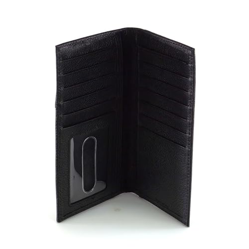 • Interior has seventeen card slots, two open cash pockets, and one plastic identification window.