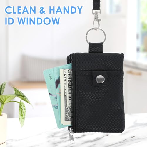 RFID Blocking Small Neck Wallet Water Resistant Zipper ID Case Pouch Travel Neck Wallet with Lanyard Keychain Badge Holder with ID Window for Women Men Boys Girls Cards Coin Daily Use 4