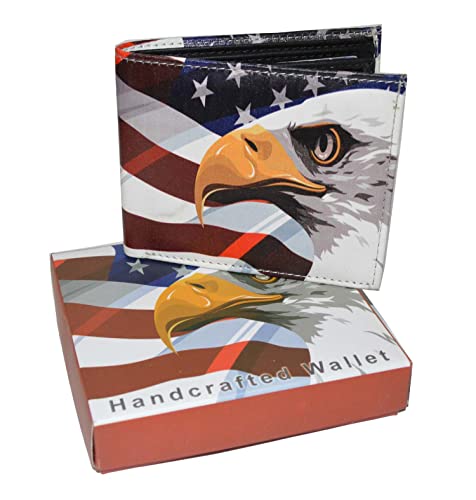 HOT ! LeatherboLeatherboss PU Leather Stylish Bifold Wallet with Printed Gift Box ss PU Leather Stylish Bifold Wallet with Printed Gift Box (US America Flag & Eagle)