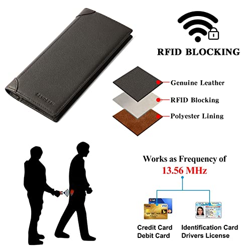 SENDEFN Long Wallets for Men Genuine Leather Slim Bifold Wallet RFID Blocking for Checkbook Credit Card 3