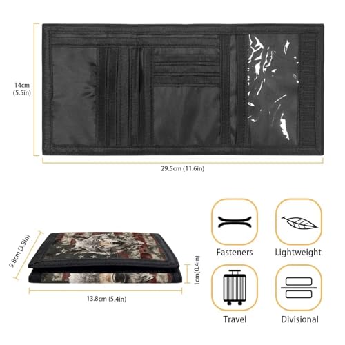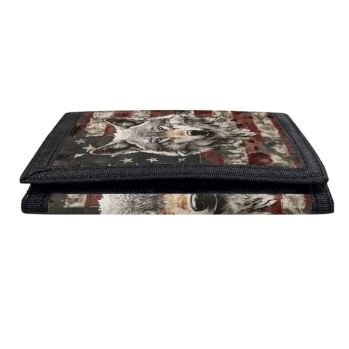 GIFTPUZZ Wallet for Boys American Flag with Wolf Camo Wallet Teens Trifold Wallet for Men with Cash Pocket and Card Holder Boys Sports Wallets Lightweight 7