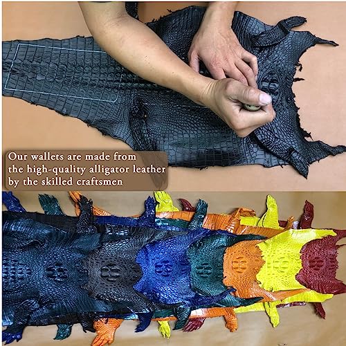 • ✅ Blue Bifold Credit Card Holder - Made of handcrafted with double side Alligator leather, make sure this minimalist wallet is durable, comfortable, and luxurious. These slim wallets are made of high-quality full-grain leather that will pass the test of time.