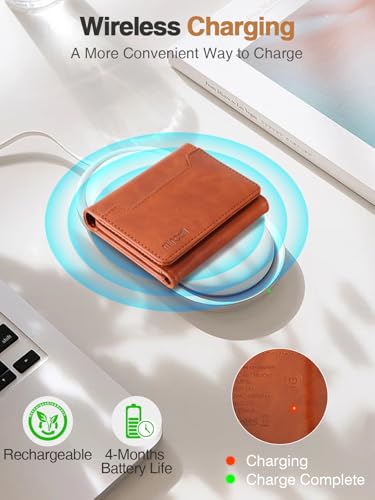 HOT ! Wallet for Men, Works with Apple Find My, Wallet Tracker, Trifold Leather Card Wallet, Minimalist Front Pocket Wallet for Men, RFID Blocking, Multi Card Slots, Credit Card Holder, Brown
