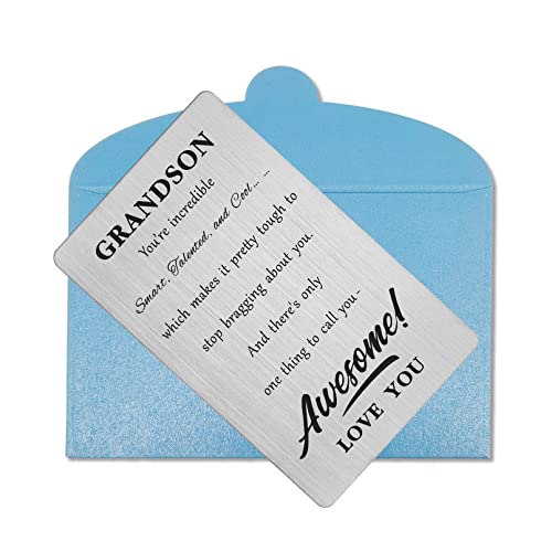 • Grandson Gift Ideas - Approximately credit card size 3.35"×2.13"×0.03", fits perfectly in any wallet, could always be with your love. Envelope included, ready for gifts giving