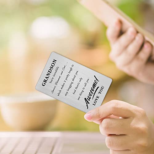 • High Quality Metal Wallet Insert Card - Made of Stainless Steel, laser engraved keepsake with permanent love notes for grandson, will not tarnish or change color, will not bend within wallet