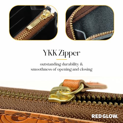 HOT ! Red Glow RG-006 Men's Long Wallet, Made in Japan, Tochigi Leather, Genuine Leather, Round Zipper, Phoenix Embossed, Japanese Pattern (Camel)