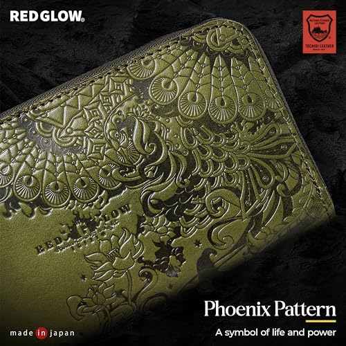 Red Glow RG-006 Men's Long Wallet, Made in Japan, Tochigi Leather, Genuine Leather, Round Zipper, Phoenix Embossed, Japanese Pattern (Camel) 1