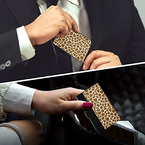 susiyo Brown Giraffe Texture Business Card Holder, Slim Business Name Card ID Case Pocket Organizer Professional PU Leather & Stainless Steel for Men & Women 5