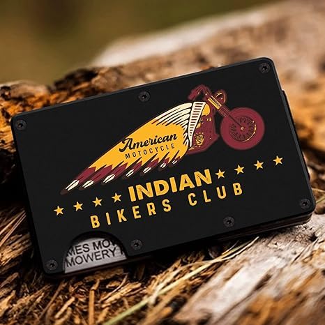 HOT ! Slim Wallet With Money Clip, Vintage American Motorcycle Indian Bikers Club Biker Slim Blocking Metal Pocket Credit Card Holder Wallet For Dad Grandpa Son Fathers day, 3.35 x 2.13, Black