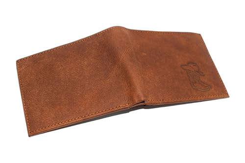 MARSHAL Men's RFID Blocking Cowboy Boots Genuine Leather Bifold Trifold Western Wallet (Bifold) 4