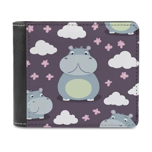 Men's Pocket Wallet, Waterproof Pu Leather Credit Card Holder Lovely Hippo Travel Bifold Wallet with Card Slots 1