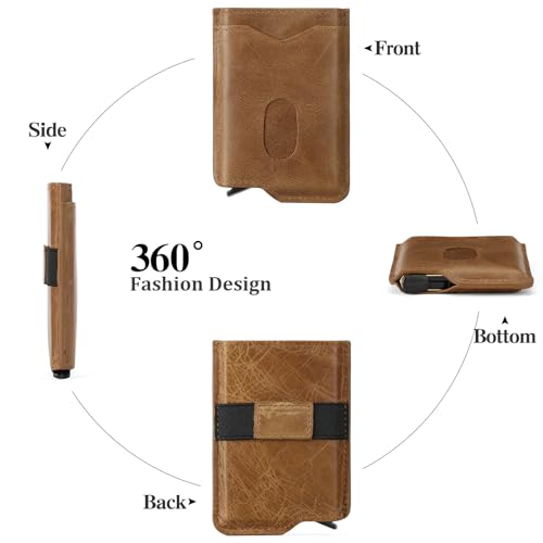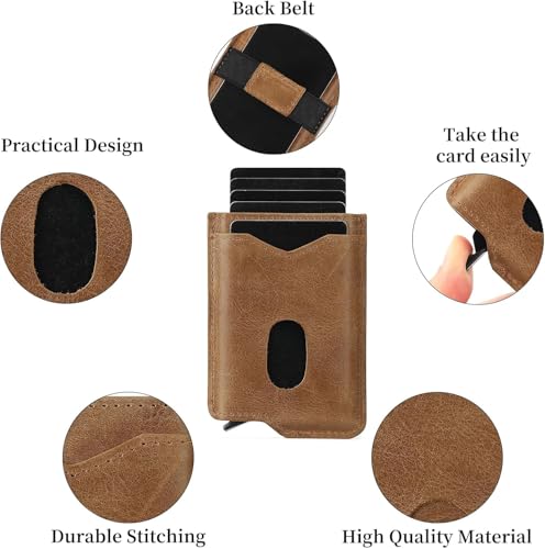 Slim Smart Mens Wallet Minimalist Genuine Leather Card Holder Cash Card Back Belt Wallet RFID Blocking Pop Up Aluminum Case Credit Card Wallet (M-Light Brown) 6