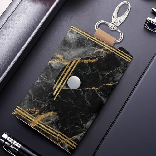 Black Gold Marble with Golden Border Key Holder Bag PU Leather ID Card Holder Keychains Case Cover for Men Women 5